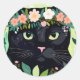 Schwarze Katze mit Blumenkronen Runder Aufkleber