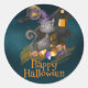 Schwarze Katze mit Bonbons, Halloween Runder Aufkleber