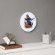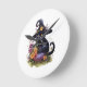 Schwarze Katze mit Cowboyhut und Blume Runde Wanduhr