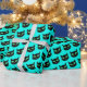 Schwarze Katze mit grünen Augen auf türkisblaues Wrapping Paper
