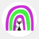 Schwarze Katze mit Halloween-farbenem Regenbogen Runder Aufkleber