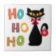 Schwarze Katze mit Ho Ho Ho Textdesign Fliese