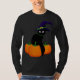 Schwarze Katze mit Hut und Kürbis zu Halloween T-Shirt