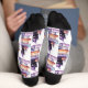 Diese herrlichen Halloween-Socken haben eine whimsical Katze und Kürbis, auf einem Stapel Bücher. Überall in der Top-Band sind die Worte, Trick oder Treat.