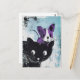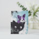 Schwarze Katze mit Lila Maus auf Kopf Postkarte