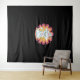 Schwarze Katze mit psychedelischer Blume Oversized Wandteppich