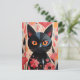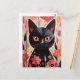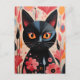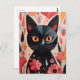 Schwarze Katze mit rosa Blume Postkarte