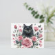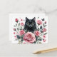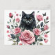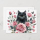 Schwarze Katze mit rosa Rosen Wasserfarbe Postkart Postkarte