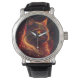 Schwarze Katze mit Rot- und Goldener Aura Armbanduhr