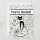 ~Personalisierte Niedliche Schwarze Katze mit einem charmanten Schwarz-Weiß-Garten Hintergrund Geburtstagsparty Einladung für Mädchen.