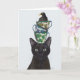 Black Cat mit Teacups und Blackbird von FabFunky. Eine schwarze Katze mit gestapelten Teetassen und einem schwarzen Vogel auf dem Kopf. | 191546D