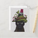 Schwarze Katze mit Teekanne und Eule Postkarte