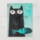 Schwarze Katze mit Türkisfisch Postkarte