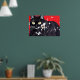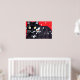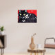 Schwarze Katze mit weißer Blume, roter Hintergrund Poster