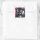 Schwarze Katze mit weißer Blume, roter Hintergrund Quadratischer Aufkleber