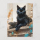 KI erzeugte schwarze Katze, die auf einem Gebäude sitzt