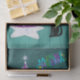 Dieses Taschentuch für Ihre Geschenkverpackung hat einen hellrosa und silbernen Weihnachtsbaum auf einem sternförmigen weißen Teppich mit einer schwarzen Katze in einem großen rosa Bogen und frohe Weihnachten in bunten Buchstaben in einem aquamarinen farbigen Raum.