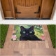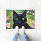 Schwarze Katze sitzt auf einem Feld von Blume Fußmatte