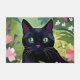 Schwarze Katze sitzt auf einem Feld von Blume