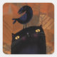 Schwarze Katze und Crow Quadratischer Aufkleber