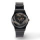 Uhr, Klassische Damenuhr mit schwarzen Lederarmband