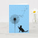 Schwarze Silhouette auf blau-weißem Polka-Dotmuster mit Katzenleuchter zum allgemeinen Geburtstag.