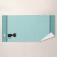 Schwarze Katze und Monogramm auf hellblauen Bath Handtuch Set. Katzenbild nur auf einer Ecke. Elegantes, einfaches Design für Singles und Paare!