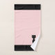 Schwarze Katze und Monogramm auf schwarz-rosa Bath Handtuch Set. Katzenbild nur auf einer Ecke. Elegantes, einfaches Design für Singles und Paare!