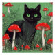 Schwarze Katze und wilde rote Pilze - Natur Poster