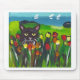 Schwarze Katze unter Tulpen Mousepad