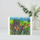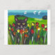 Schwarze Katze unter Tulpen Postkarte