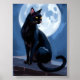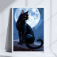 Schwarze Katze | Vollmond-Haustier-Wasserfarbenmalerei Poster