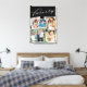 Leinwand aus der Familie in Schwarz, in Kalligraphie geschrieben. Darunter eine Foto-Collage aus verstreuten quadratischen Fotos gerahmt von Weiß.