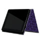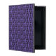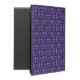 iPad Fall mit einem einzigartigen weißen Damastmuster eines Wirblen lächelnden Katzengesichtes. Dargestellt hier auf Lila aber verfügbarem in irgendeiner Hintergrundfarbe Ihrer Wahl. Verlassen Sie den Entwurf wie ist oder verwenden Sie ihn als Spaßhintergrund für Ihr Foto oder Text.