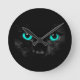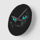 Schwarze Katzen-grüne Augen Runde Wanduhr