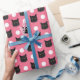 niedliches rosa Verpackungspapier der schwarzen Katze, Katzengeschenkverpackung, Katzendamen-Verpackungspapier, Katzendamengeschenk