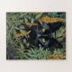 Katze und Blume inspiriert von Vincent van Gogh. Whimsical lustige schwarze Katze umgeben von einem Gras und bunten Blume. Das perfekte Accessoire für jeden Katzenliebhaber. Schöne Tiere, Blütenkunst. Schöne Ölmalerei, digitale Kunst.
