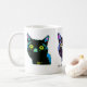 Kleiner Mann, der Samt-Panther des schwarze Katzen-Vereins, die Welt aufpassend gehen vorbei.