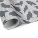 Dieses gemusterte Packpapier ist perfekt für Vogelliebhaber. Es zeigt realistische Stilabbildungen von Krähen im dunkelkohlegrauen Set vor einem gesprenkelten hellgrauen Hintergrund.