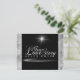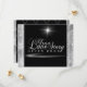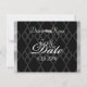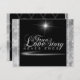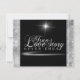 Eine Liebe-Geschichte endet nie mit einem Hochzeitsthema der Schwarzen Krawatte. Sparkling Diamant-Look mit weißen Satin-Rahmen "A Liebe Story Never Ends" Typografie. Einladendes Set auf einem schwarzen Diamant Samt Hintergrund mit Satin Rahmen.