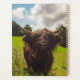 Schwarze Hochlandkuh weidet grünes Feld Sonnenlicht. Foto einer majestätischen schwarzen Hochland schottischen Kuh Weiden auf einem sommerlichen grünen Feld mit Gras im Mund und Zichorien Blume vor. Im Hintergrund ist ein schöner, blauer, sonniger bewölkter Himmel. Erhältlich bei vielen Produkten, von Druckerzeugnissen bis hin zu Party- und Sportgeräten.