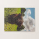 Schwarze Kuh Weide grünes Feld Sonnenlicht Puzzle