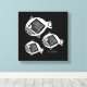 Tinte gezeichnet von drei Fischen stilisiert. WEISSER INK AUF SCHWARZER ODER DUNKELFARBIGER LEINWAND. Inspiriert durch antikes Töpferdesign und Felskunst zeichnete ich diese Fische nicht realistisch, sondern interpretierend. DURCH TRFORSMAN.