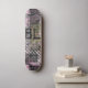 Schwarze lila Collage-Kunst auf Skateboard