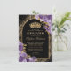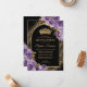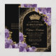 Schwarze Lila Violette Gold Floral Quinceanera Mitteilungskarte