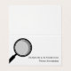 Gefaltete Visitenkarte im Weiß mit schwarzen Details für einen Detektiv oder ein PU-Unternehmen. Auf der Abdeckung, eine schwarze Lupe, Ihr Firmennamen und Dienstleistungen und/oder tagline. Innerhalb Sie kann Namen, Kontaktinformationen und andere Informationen, wie eine Preisliste oder eine Probe von Dienstleistungen hinzufügen.