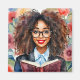 Schwarze Mädchen mit Brille und Buch Magnet