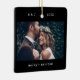 Diese schlichten und minimalistischen Weihnachtsschmuckstücke zeigen Ihr liebstes Hochzeitsgeschenk auf der Vorderseite mit Ihren Initialen, dem Jahr, und die Worte "fröhlich und verheiratet" in der weißen Schreibmaschine sehen Text auf einem schwarzen Hintergrund. Auf der Rückseite befindet sich ein anderes Foto, das mit einem Overlay beleuchtet wird, sodass Sie direkt darüber noch einen oder mehrere weitere Namen hinzufügen können. Ein stilvoller Sake für Ihre erste Weihnachtszeit als Ehemann und Ehefrau.
