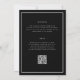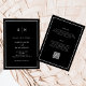 Diese eleganten, modernen und in einer Hochzeitseinladung gehaltenen Zimmer sind mit einem schlichten, minimalistischen Text-Design ausgestattet, mit einem klassischen Rahmen an der Grenze auf einem dunkelschwarzen Hintergrund. Fügen Sie Ihre Initialen oder Monogramme hinzu, um sie komplett zu Ihrem eigenen zu machen. Auf der Rückseite der Einladungen finden Sie Platz für Ihre Hochzeitsdetails (Empfang-Infos, Hotelunterkünfte usw.) und uAwg (einschließlich eines scannable QR-Codes, damit die Gäste online über Ihre Hochzeitswebsite antworten können).