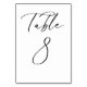 Tabelle 8. Elegante Tischnummern mit schwarzem minimalistischem Schrift. Diese schwarz-weiße Tischnummer ist ideal für Hochzeiten, Abschluss, Babyduschen, Brautpartys und andere Veranstaltungen. Weitere Nummern und Farben sind verfügbar.